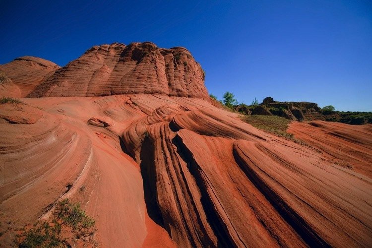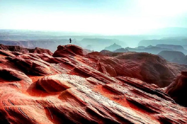 在陕北高原的靖边,有一个从未被外人发现的处女风光地,它堪与美国西部波浪谷媲美,绵延几公里的丹霞地貌景观,被当地人称为“红沙峁”。